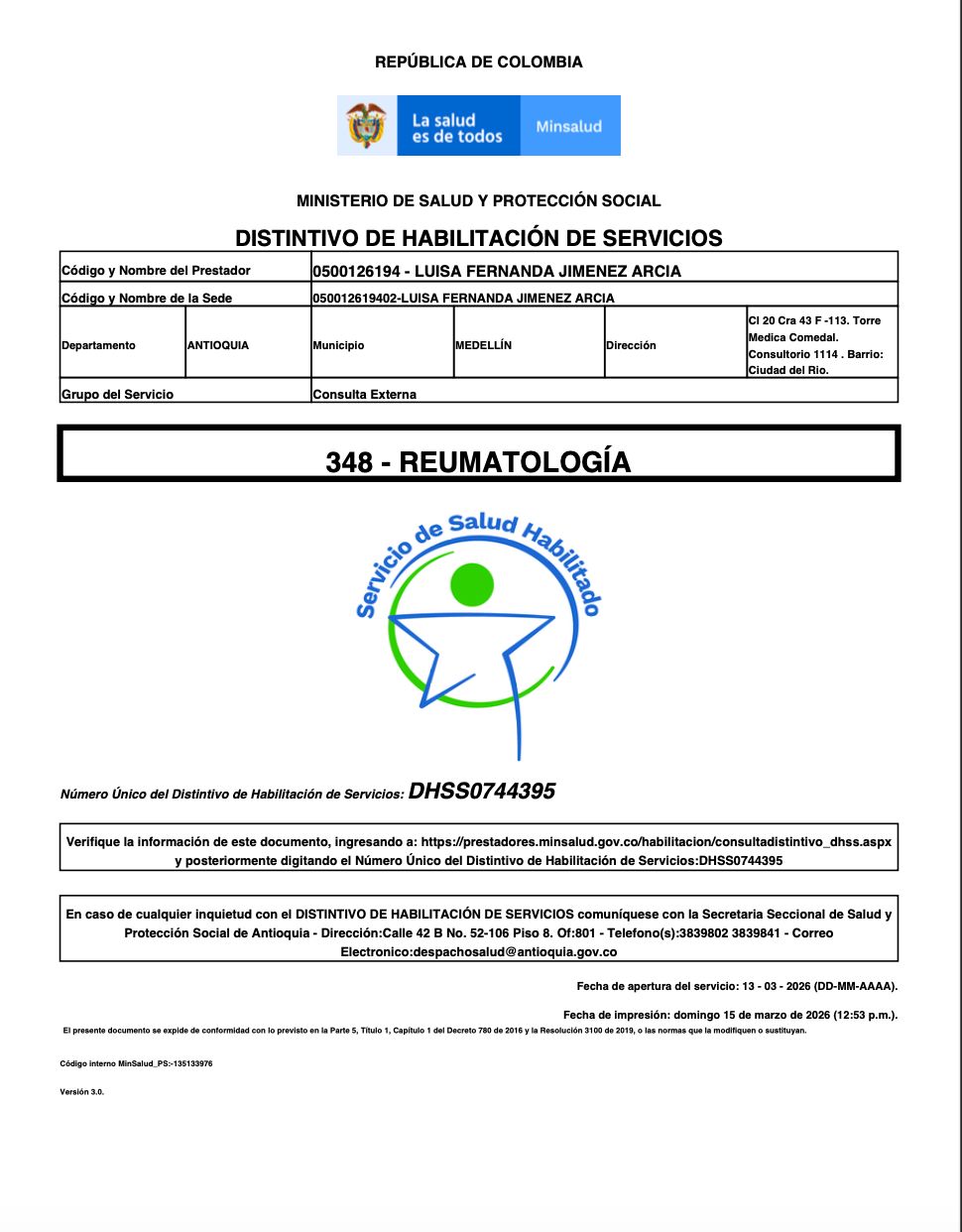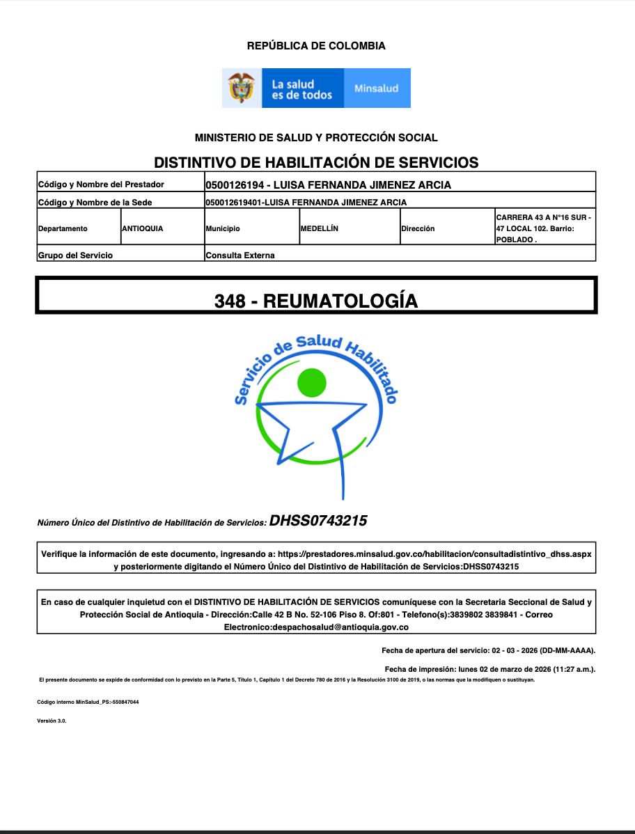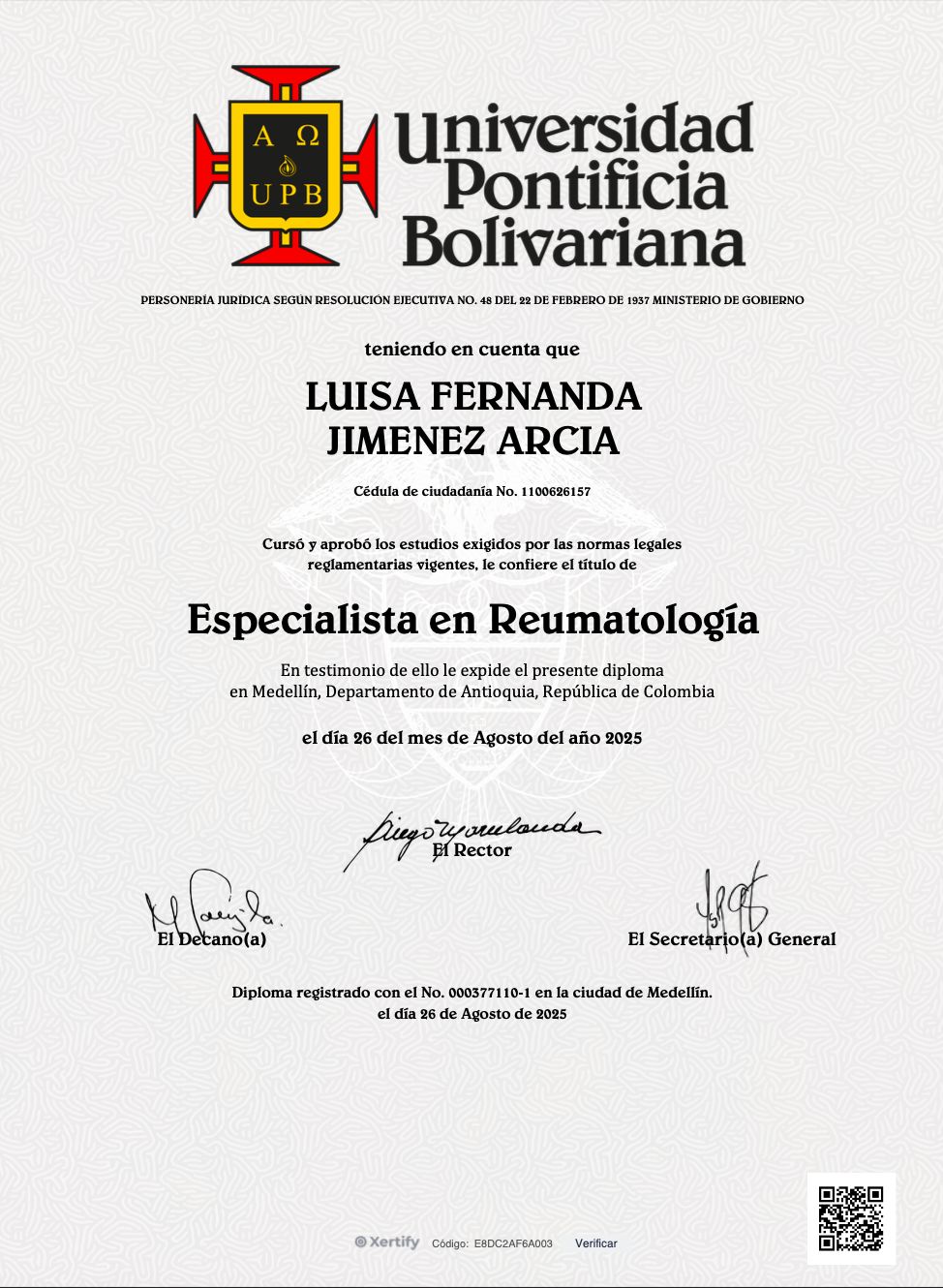 Soy la Dra. Luisa Jiménez, reumatóloga, dedicada al diagnóstico y tratamiento de enfermedades autoinmunes y reumatológicas.